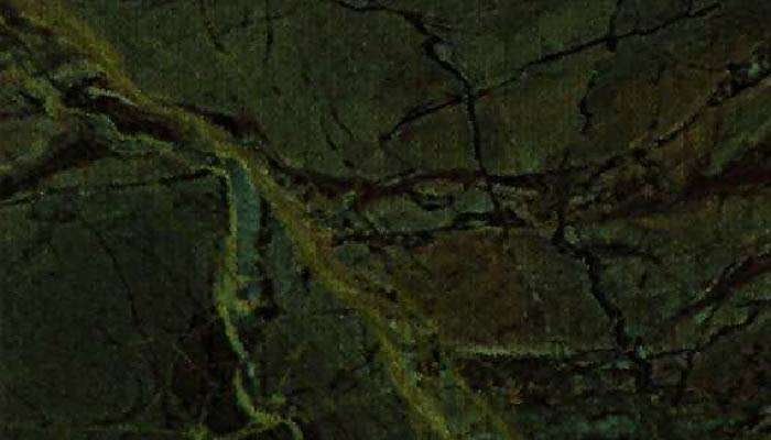 Base Color: Greenish-grey with flowing multicolor patterns.