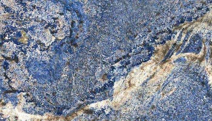Base Color: Vivid blue with white quartz and darker patches.